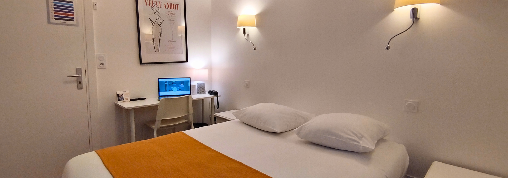 Côté parking privé ou côté rue, nos chambres sont équipées :
